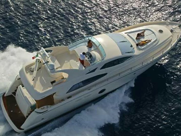 Aicon 67 is a comfortable Power boat available for charter in Greece. With 4 cabins and 8 berths, it has the ability to cater up to 8 people overnight. This makes this yacht a perfect choice for families or small groups of friends who wish to explore the region. Make and online reservation with 12knots and experience a great sailing trip in Greece.