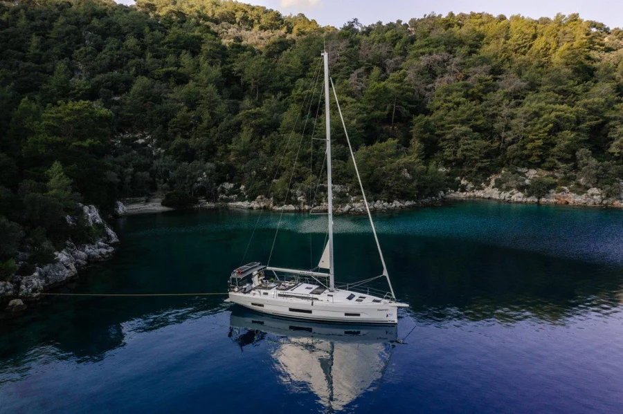 Explore the allure of the Mediterranean aboard the Dufour 470 - 4 cab., aptly named Happiness. Available for charter from the picturesque port of Gocek, Turkey, this 2022 sailboat offers a seamless blend of performance and comfort, making it an ideal choice for both novice sailors and seasoned seafarers.