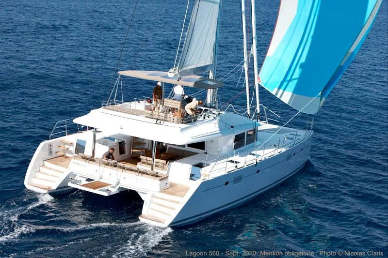 Yes. Lagoon 560 - 5 + 2 cab. Topaz is offered by professional charter company and has hull and third-party liability insurance.