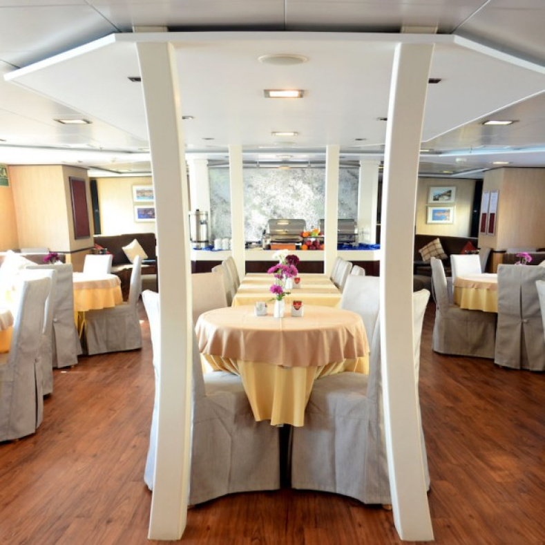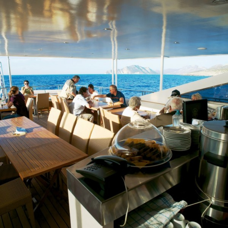 - Pensión completa: Desayuno buffet y dos comidas diarias, incluyendo un cóctel de bienvenida, una velada temática local, una divertida barbacoa (si el tiempo lo permite) y la cena del capitán.