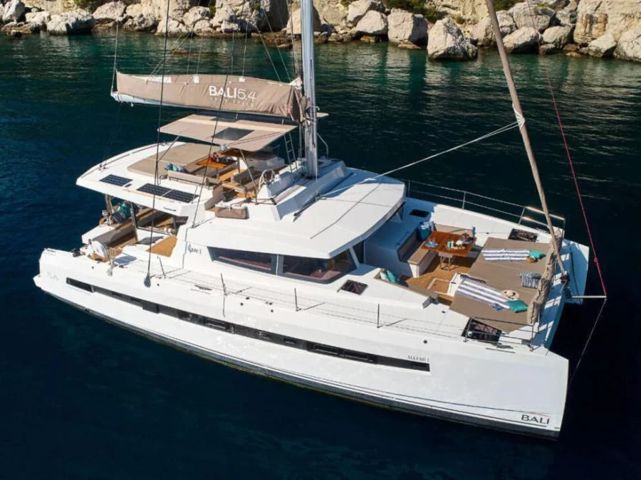Bali 5.4 es un cómodo Catamarán disponible para alquilar en España - Ibiza. Con 6 camarotes y 12 literas, tiene la capacidad de atender hasta 12 personas durante la noche. Esto hace de este yate una opción perfecta para familias o pequeños grupos de amigos que desean explorar la región. Haga una reserva en línea con 12knots y experimente un excelente viaje en velero en España - Ibiza.