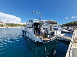 Platinum 40 est un confortable Bateau à moteur de bateau disponible à la location dans Croatie. Avec 4 cabines et couchettes 8, il a la capacité d'accueillir jusqu'à 8 personnes pendant la nuit. Cela fait de ce yacht un choix parfait pour les familles ou les petits groupes d'amis qui souhaitent explorer la région. Faites et réservez en ligne avec 12 nœuds et vivez une superbe croisière en Croatie.